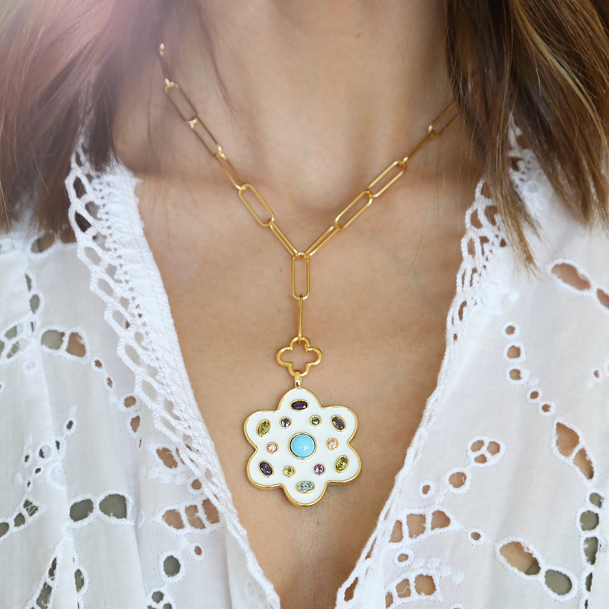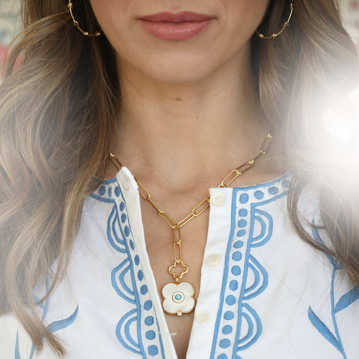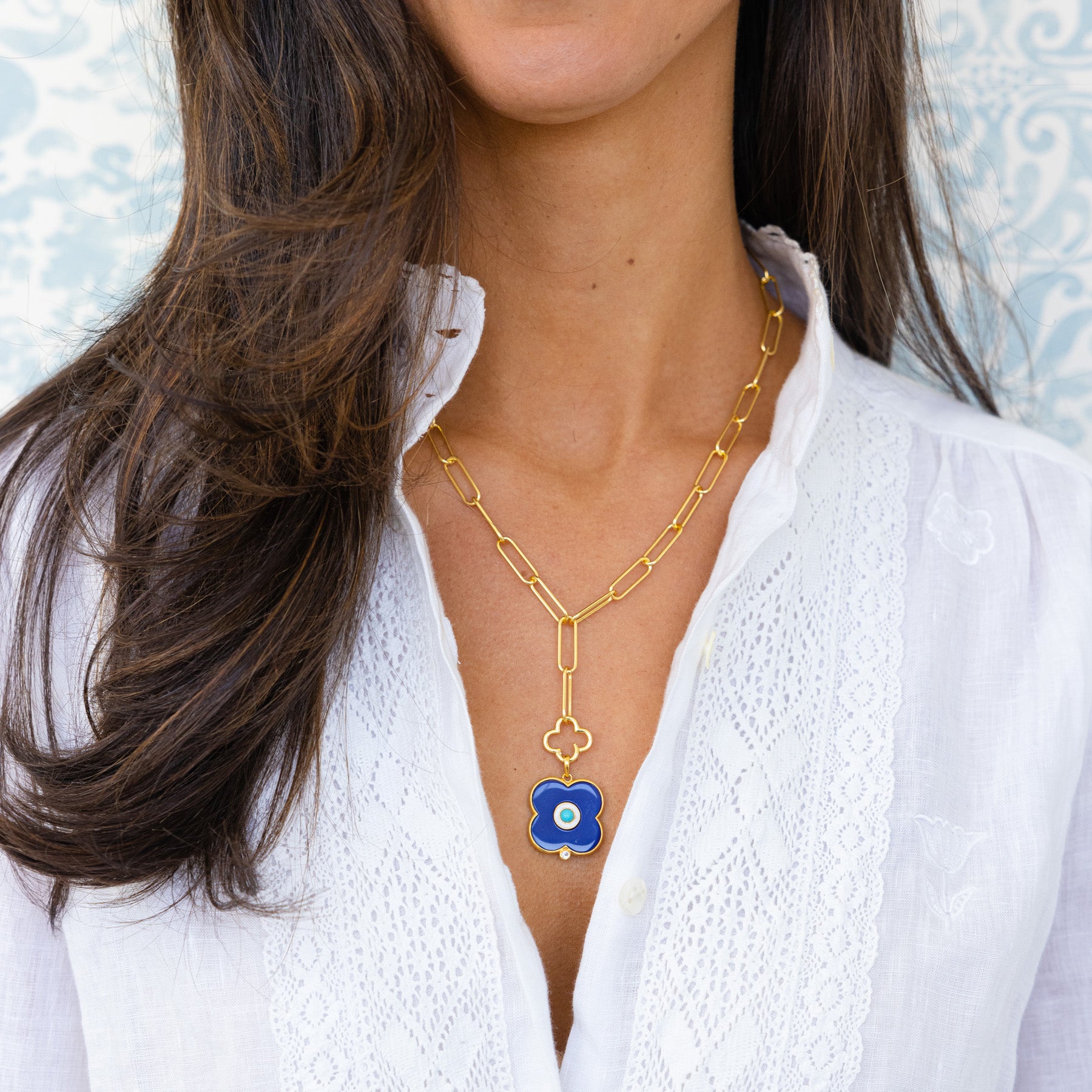 Our 14k gold dipped clover lariat is perfect on its own or layered with a long necklace. The clover charms opens to add any charm of your choice!
