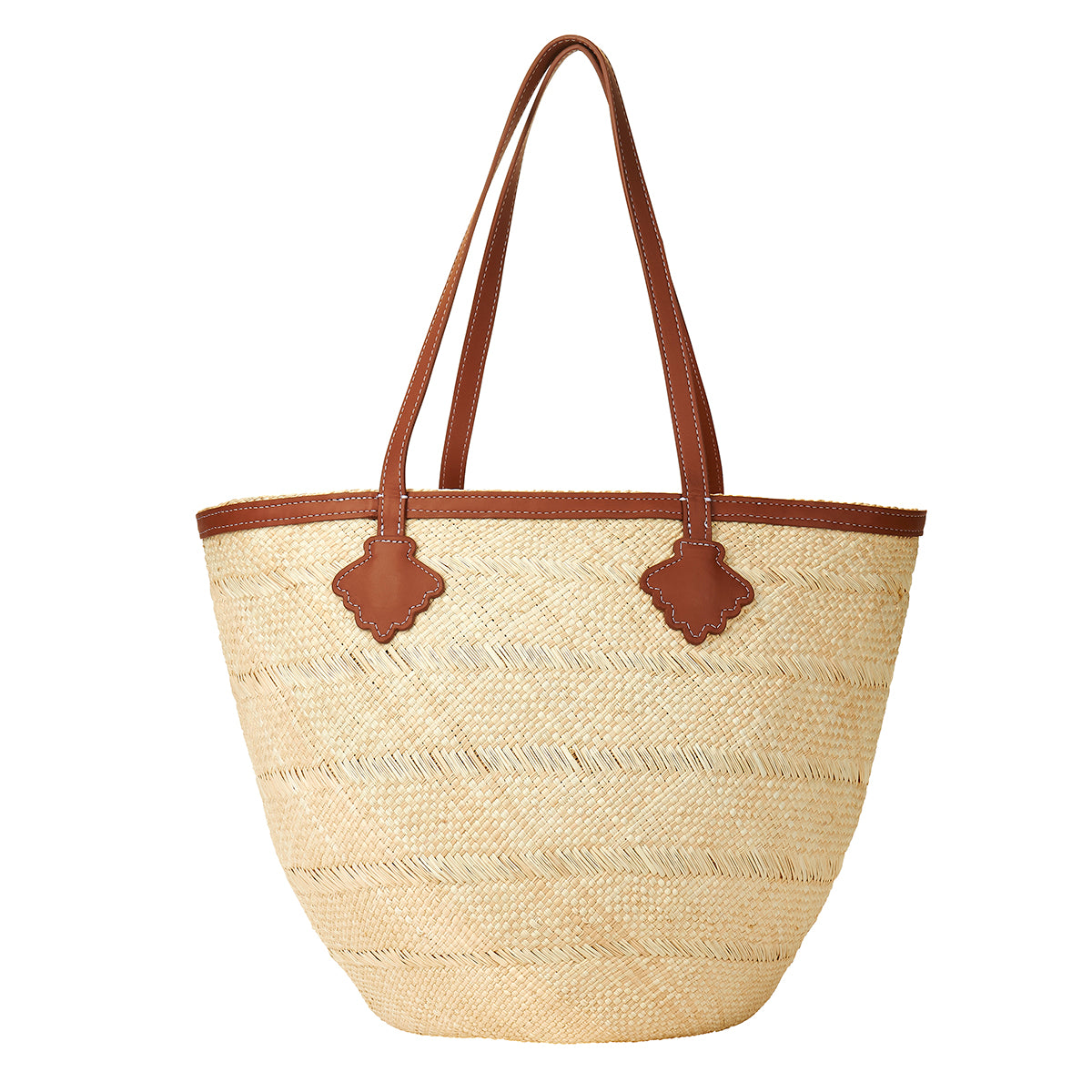 Straw Corfu Basket with saddle leather handles & interior pocket w/ zipper