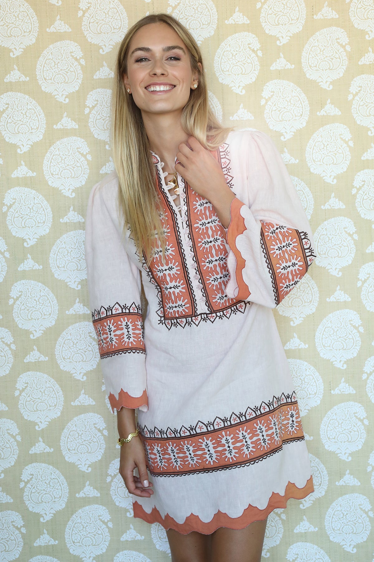 The Terracotta Sabine Mini is a new take on a favorite silhouette with bold rust and brown embroidery and a detailed edge. Sabine's artisanal charm and delicate detail makes it the perfect piece to carry you from high summer to early fall.