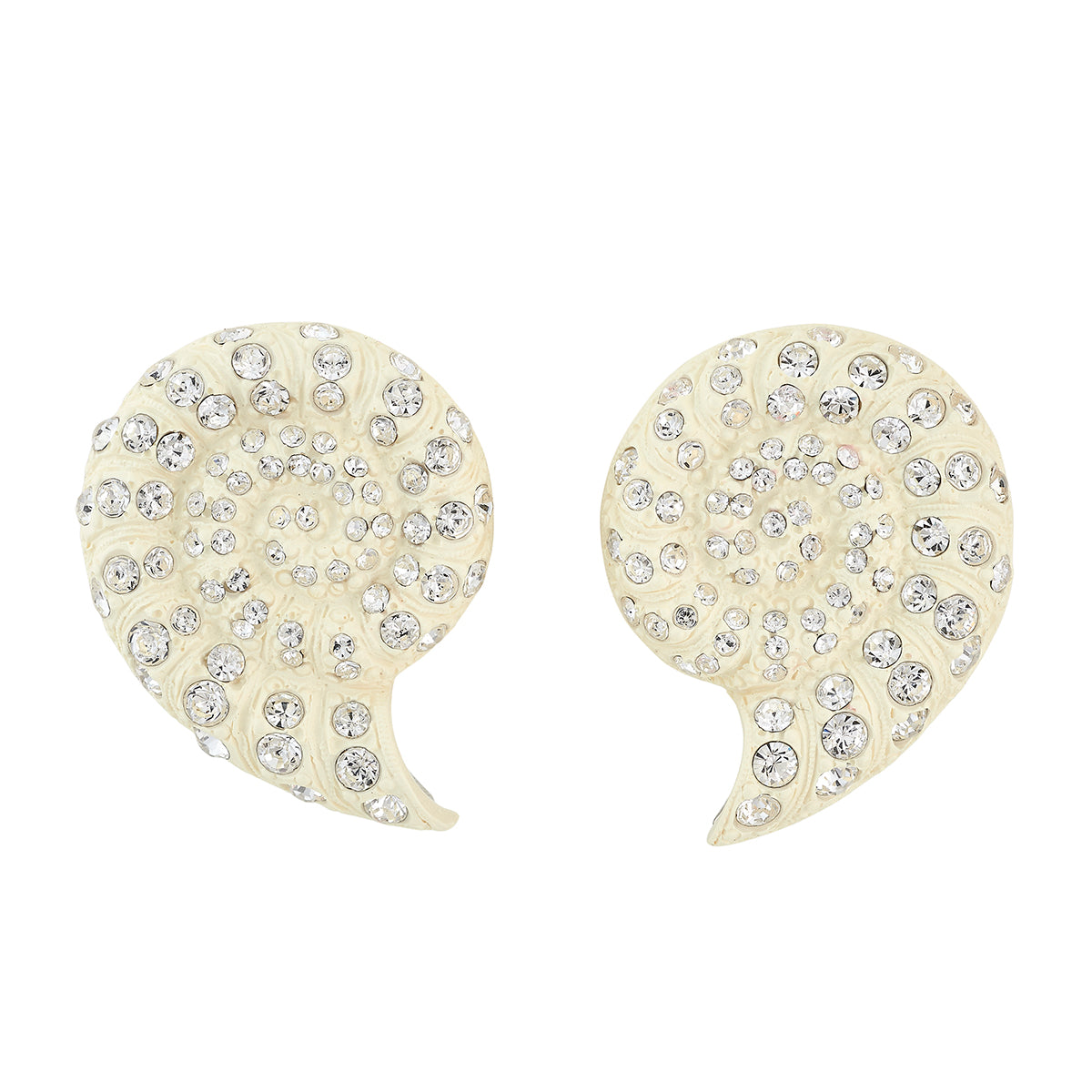 Ivory resin over white gold tone dipped clip on Isola nautilus stud with Swarovski crystals