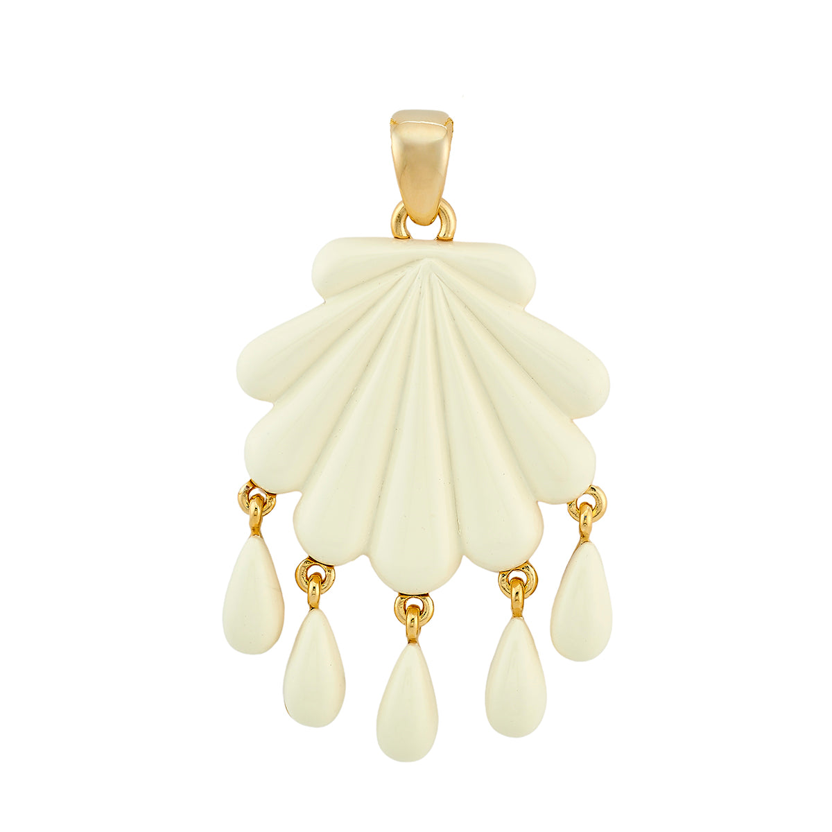 Ivory resin Sirena scallop shell pendant. Pictured with our mixed link chain (sold separately).