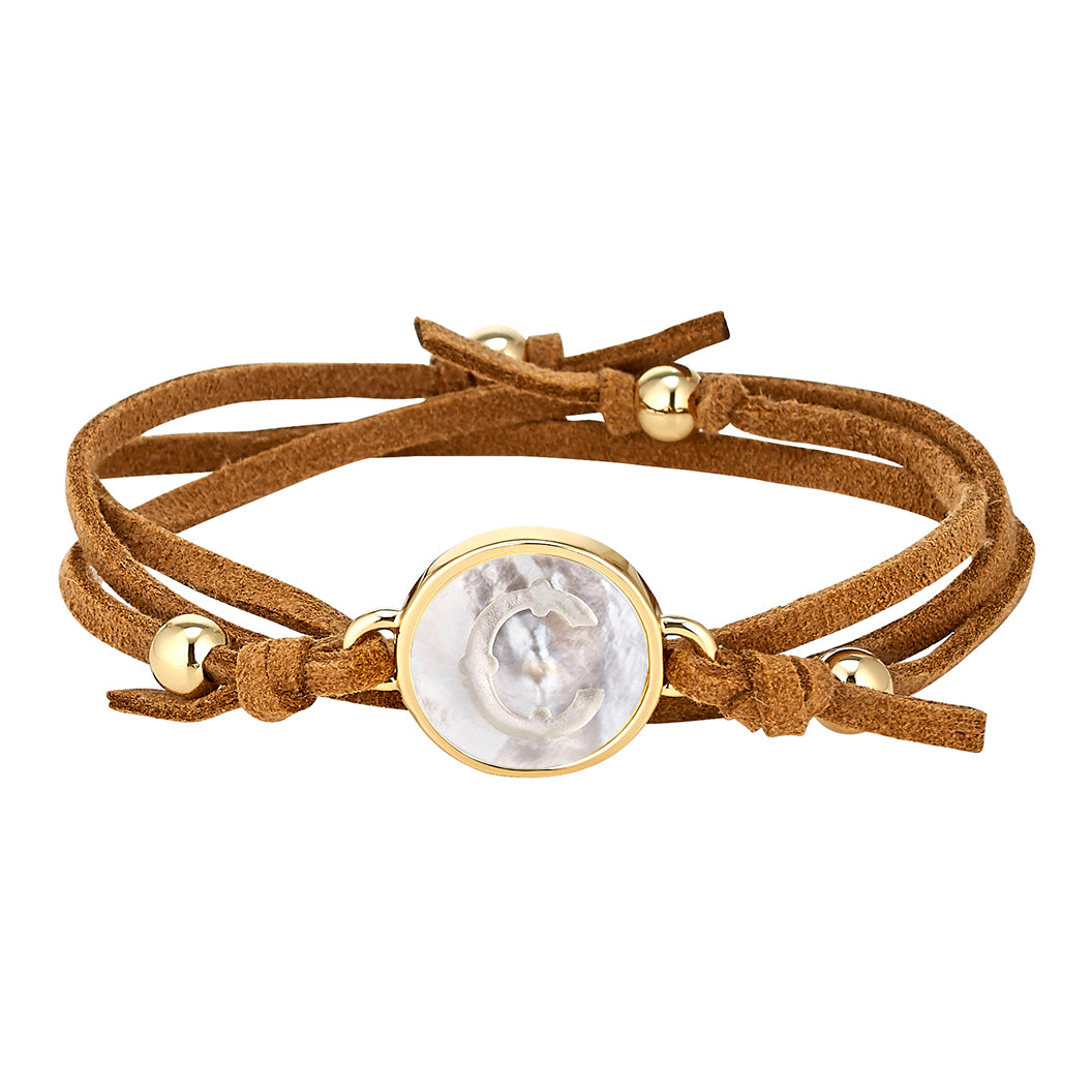 This camel suede bracelet is a great stand alone piece or layer it into your favorite everyday arm party.