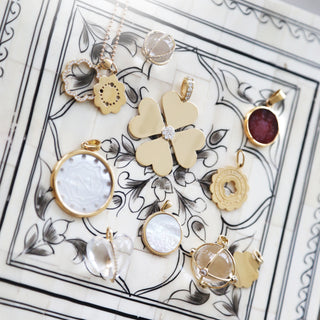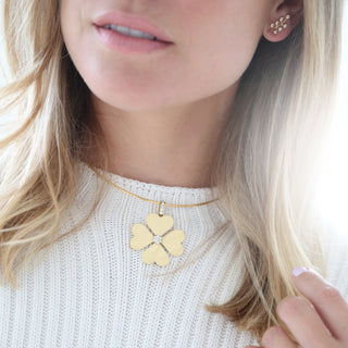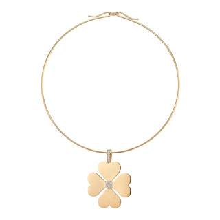 18k gold heart clover charm with pave diamond center and on bail. Chain & Neck Wire sold separately. 38mm
